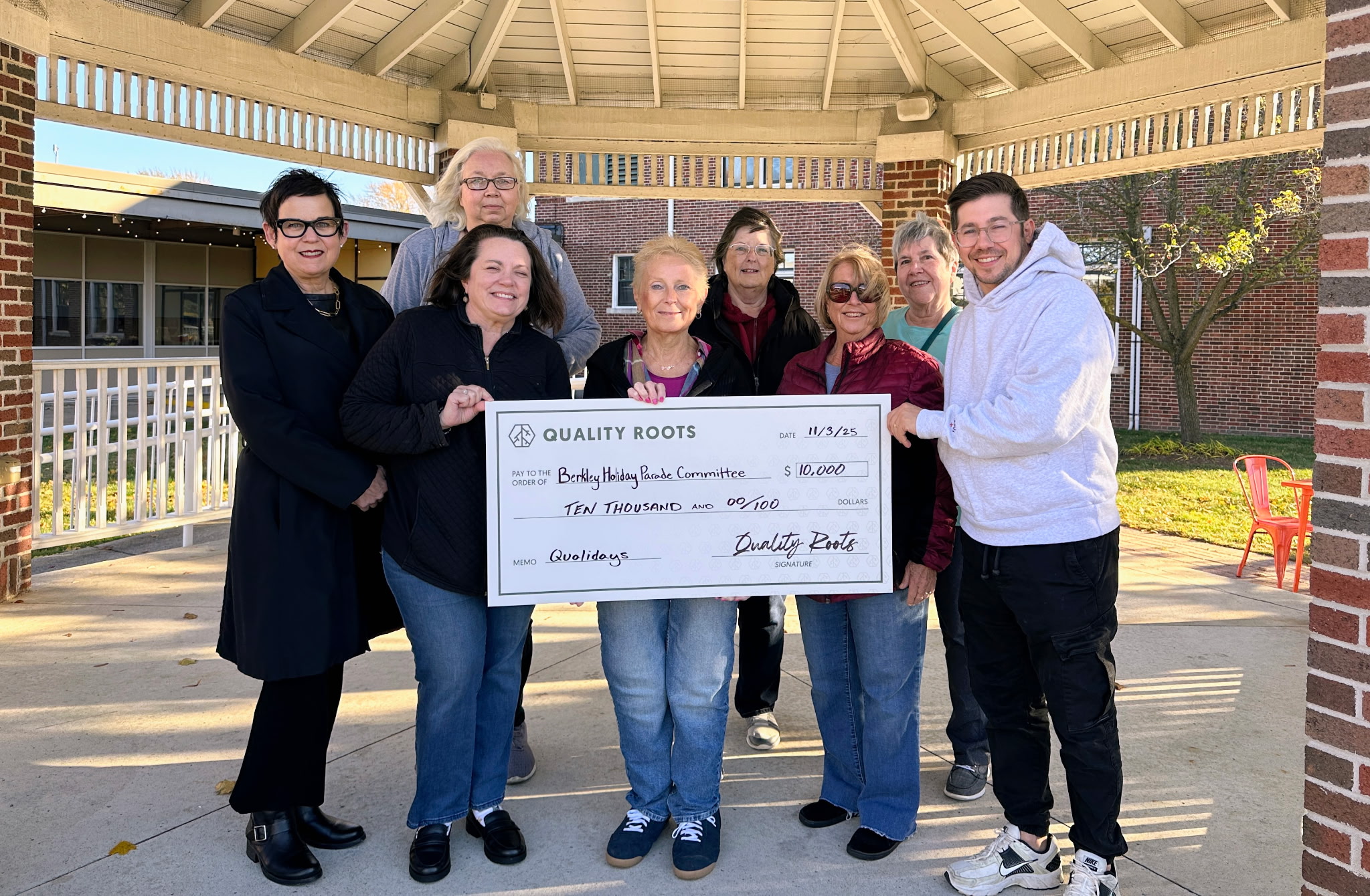 Quality Roots recently presented its donation to the Berkley Holiday Lights Parade, a free event powered by donations that serves as an opportunity to come together and celebrate the season with family, friends and neighbors.